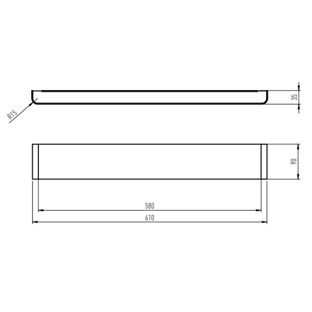 Fabricado en aluminio duradero, disponible en negro satinado o blanco satinado, se adapta a cualquier estilo arquitectónico. Con dimensiones de 610mm x 35mm x 90mm y un CRI de 88, este aplique no solo es funcional, sino también estéticamente agradable.