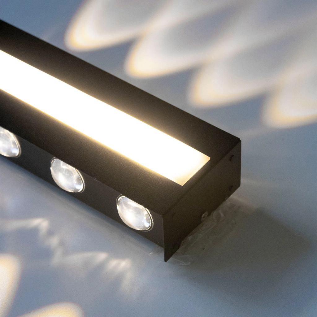 Potencia: 24w Modelo: Lino 3 Color de la estructura: Negro Fuente de Luz: Led Direccion de la luz: Bidireccional + Luz Frontal Uso: Aplique de pared Conexion: 220V Medidas: 217mm x 80mm x 50mm