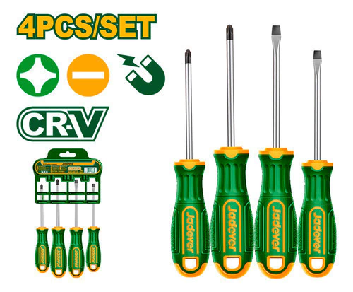 Elegí calidad y funcionalidad con el Kit 4 Destornilladores Jadever, perfecto para tu caja de herramientas.