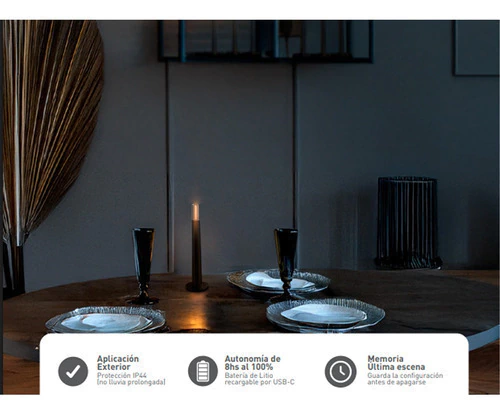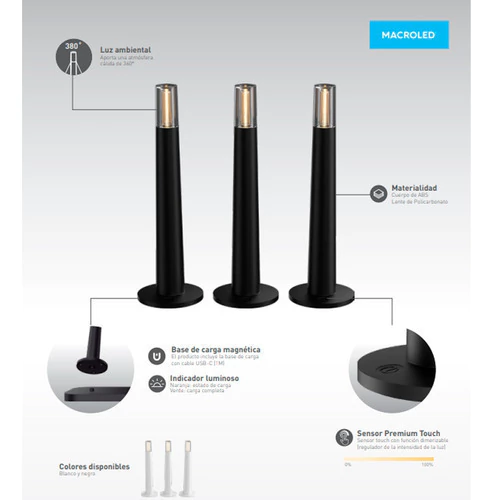 Transforma tu espacio con el Kit X3 Velador De Mesa 100lm Candle de Macroled. Este elegante velador táctil inalámbrico es ideal para crear una atmósfera cálida y acogedora en cualquier rincón de tu hogar o exterior, gracias a su luz indirecta de 360 grados.