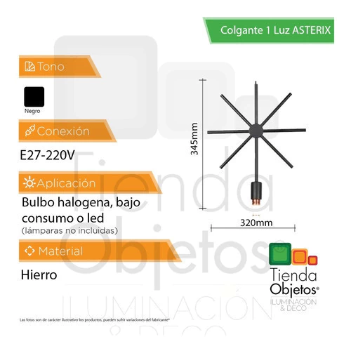 - Tipo de lampara de techo: Colgante