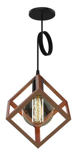 Esta lámpara utiliza un zócalo E27 compatible con bulbos halógenos, LED o bajo consumo (lamparas no incluidas), funcionando con una conexión de 220V. Sus medidas compactas (180mm x 180mm para el cubo y 254mm x 287mm x 307mm colgada) la hacen ideal para espacios que buscan una iluminación focalizada y decorativa.
