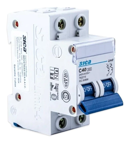 Llave Térmica Bipolar Termomagnética 2x40A 3kA – Marca SICA