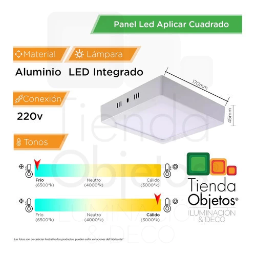 PACK X 10 PANEL LED DE APLICAR CUADRADO 12W