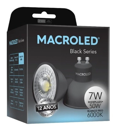 PACK X 10 LAMPARAS DICROICA LED 7W 38° Grados NEGRA