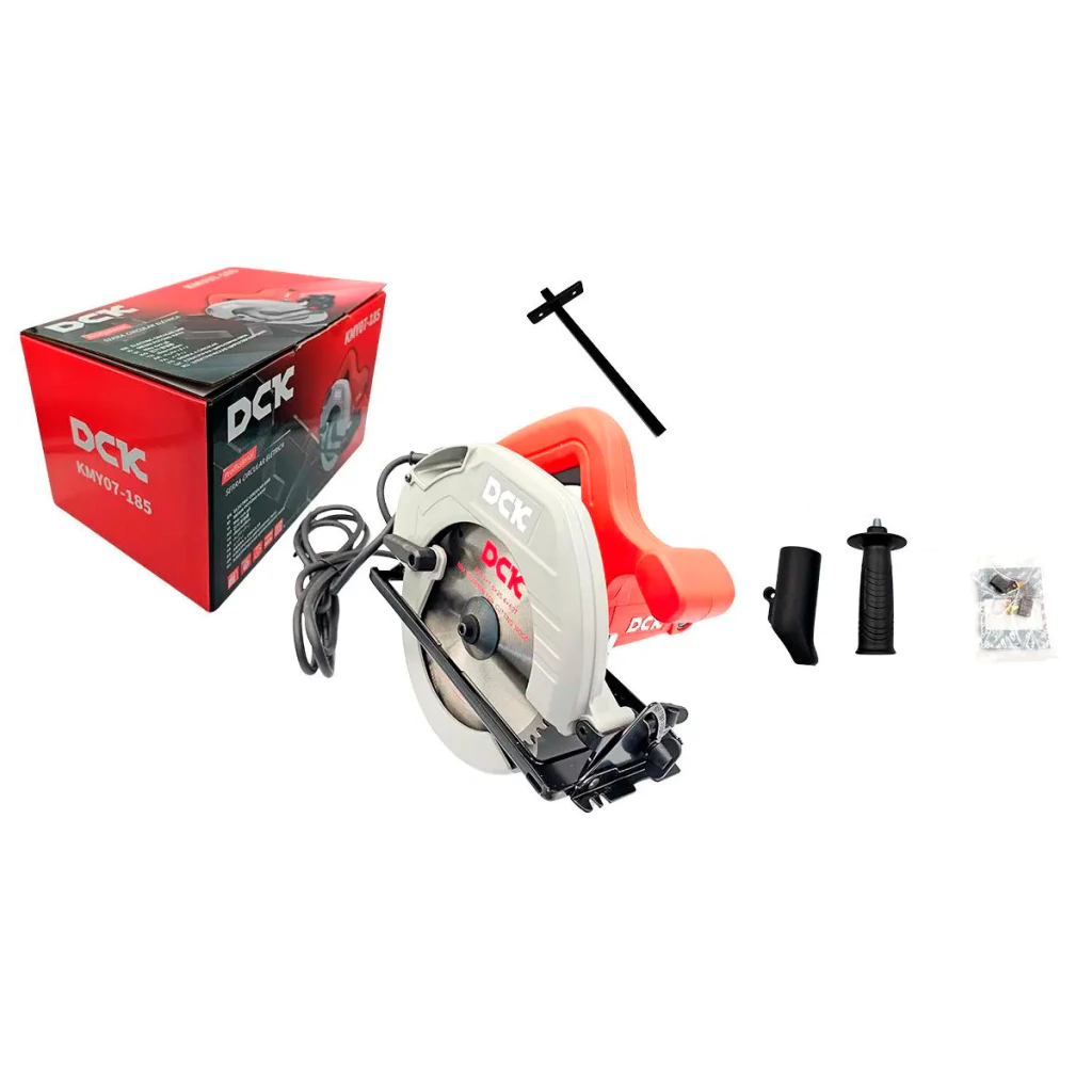 Sierra Circular 1500w Professional Disco 185mm Dck Descubrí la herramienta esencial para tus proyectos de carpintería con esta sierra circular de alta potencia y rendimiento superior. Con un motor de 1500w que garantiza fuerza y eficiencia, esta sierra trabaja a una velocidad de 5300rpm, permitiendo cortes precisos y rápidos en madera.