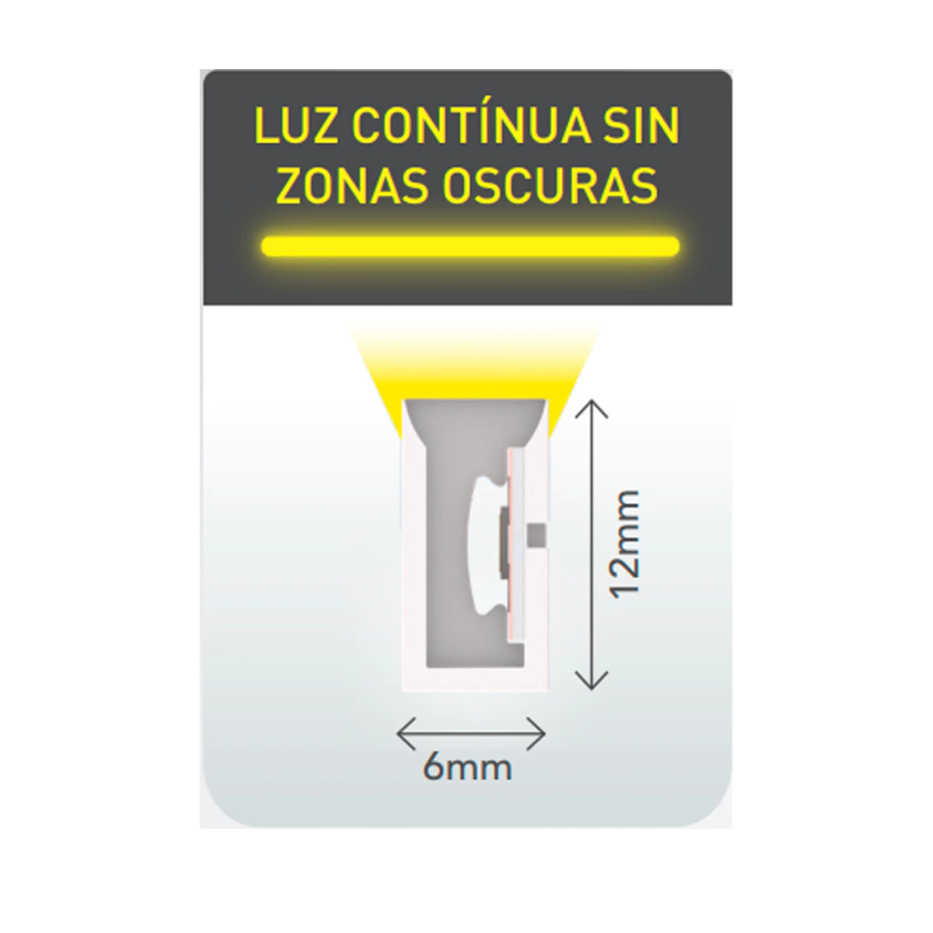 Transforme cualquier espacio con nuestra Tira Luz Neon Led 2835, que ofrece un efecto similar al gas de neón. Con una potencia de 10w/m y un total de 50w, esta tira proporciona un flujo luminoso de 2500lm en sus 5 metros de longitud, garantizando una luz pareja y continua sin zonas oscuras.